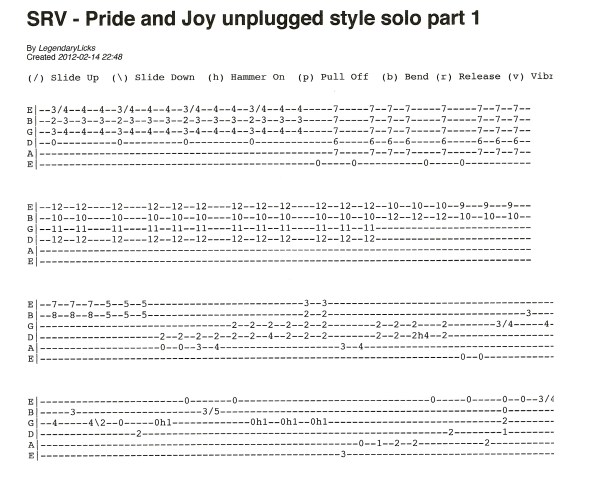 Stevie Ray Vaughan – Pride and Joy unplugged style solo with tablature for instructional purposes.
