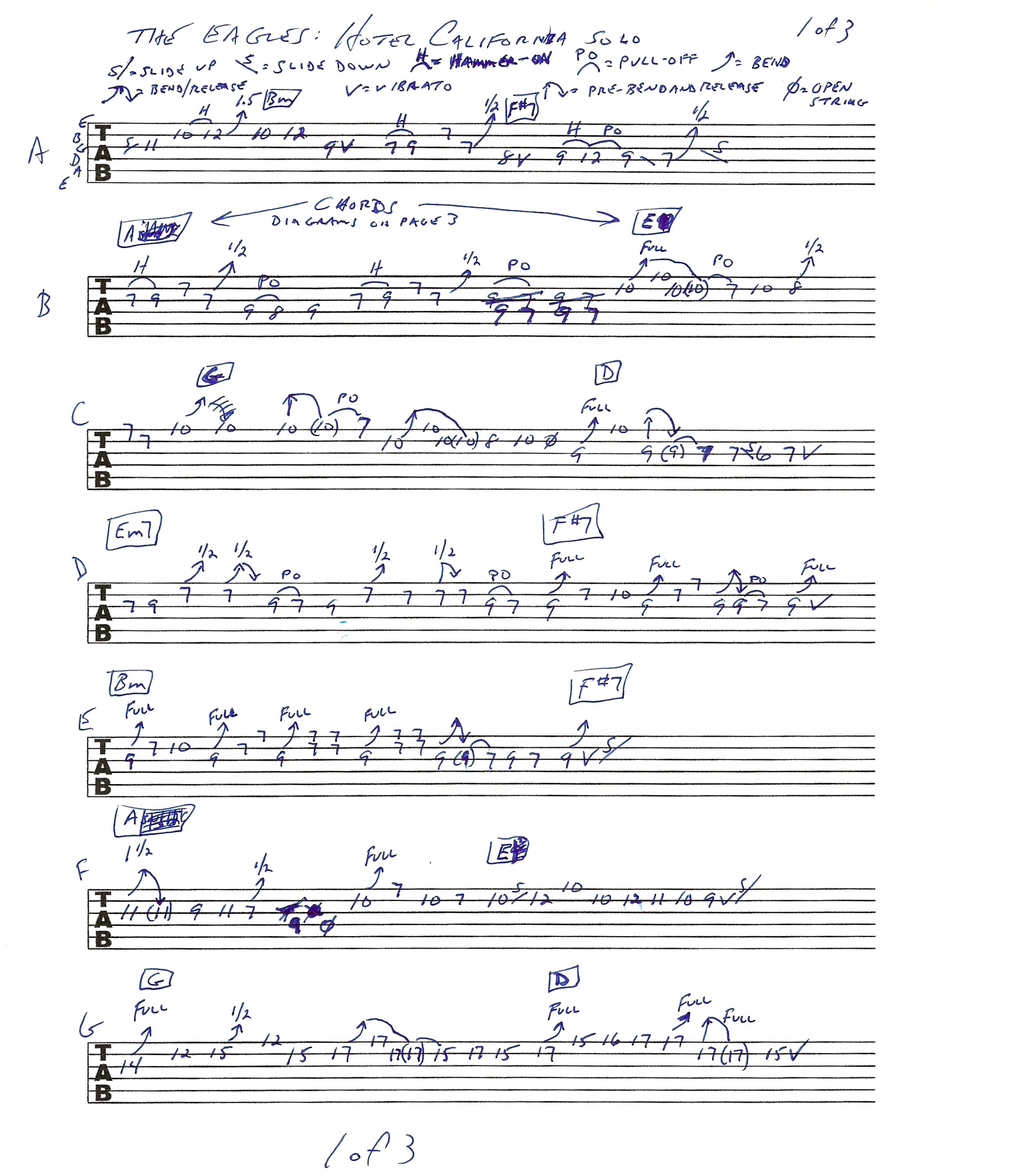 The Eagles – Hotel California guitar solo lesson with lick-by-lick demo and guitar tab.