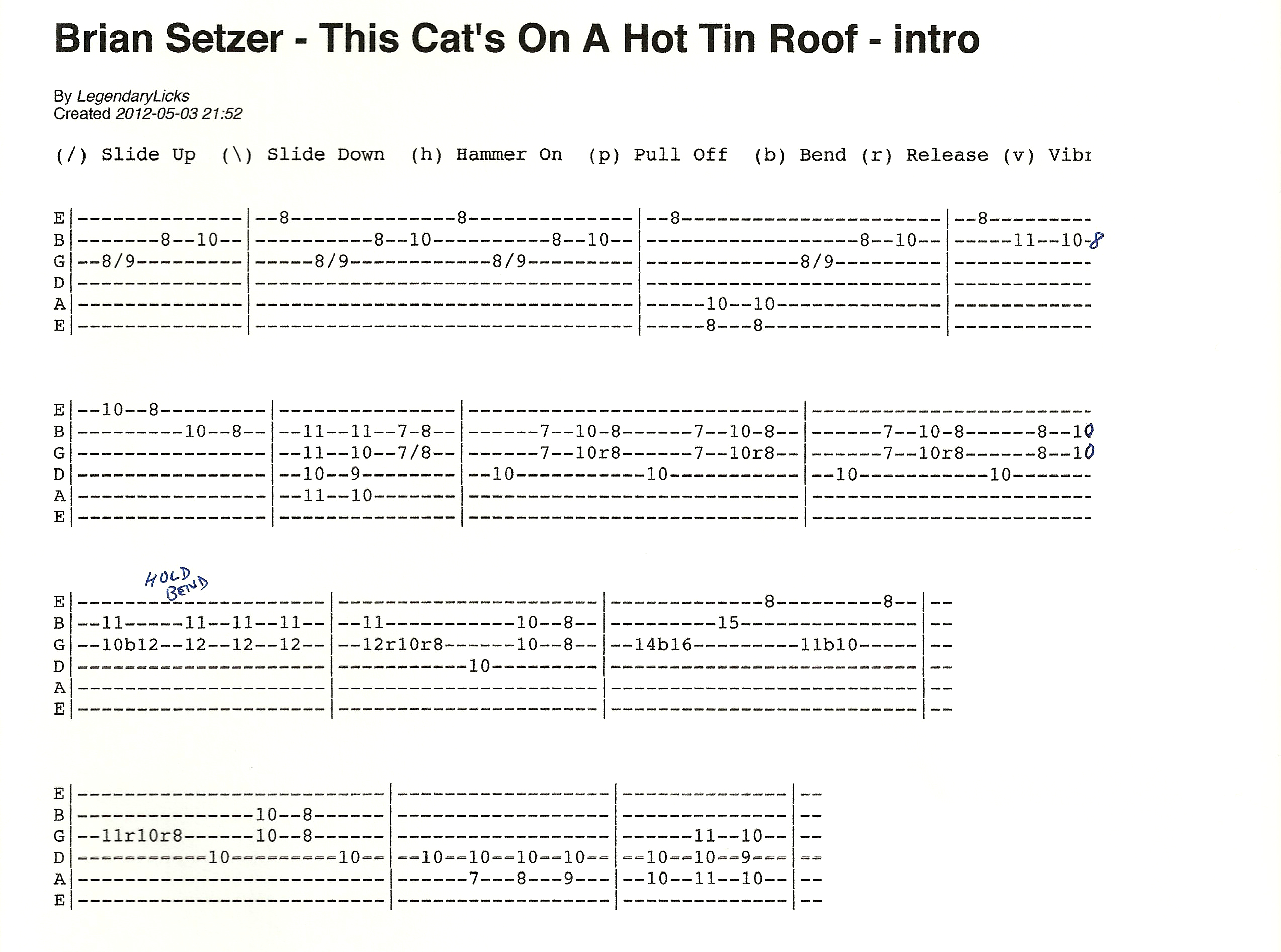 Brian Setzer – This Cat’s On A Hot Tin Roof – intro with guitar tablature for instructional purposes.