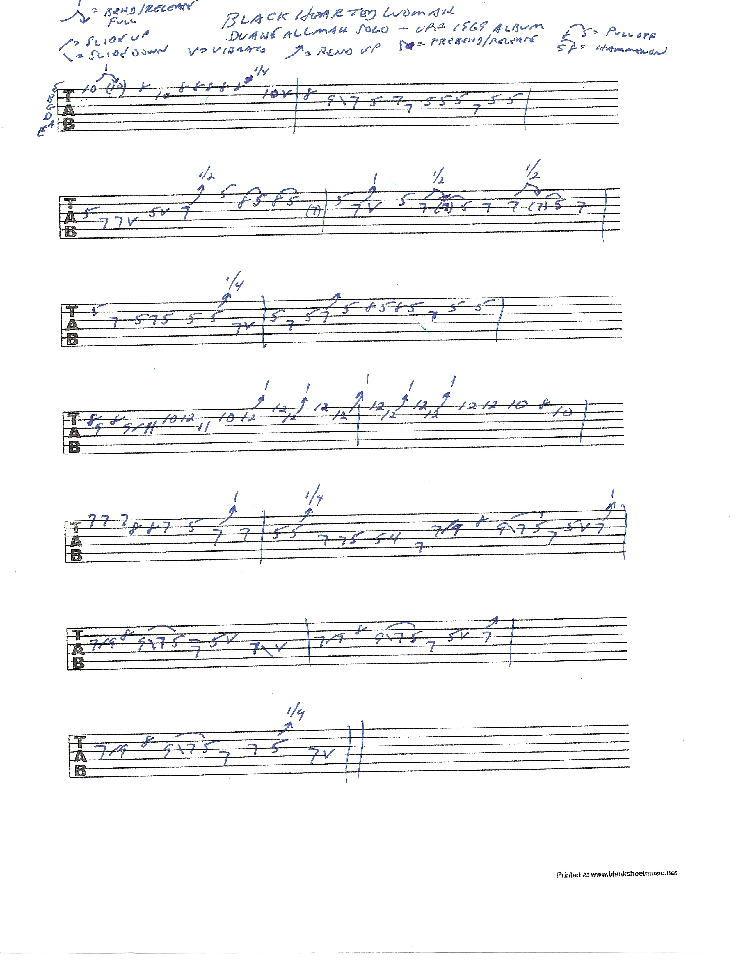 Link to the Black Hearted Woman solo at three-quarter speed – click here.