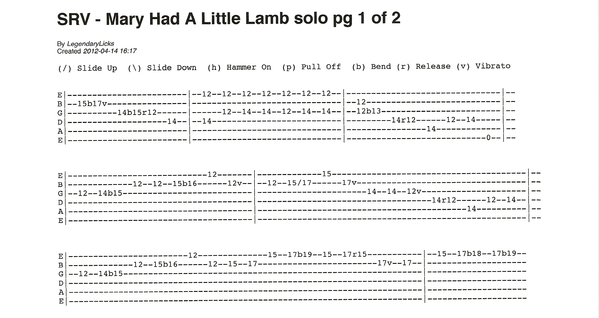 Jimi Hendrix – The Wind Cries Mary – solo with guitar tablature for instructional purposes.